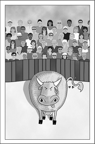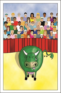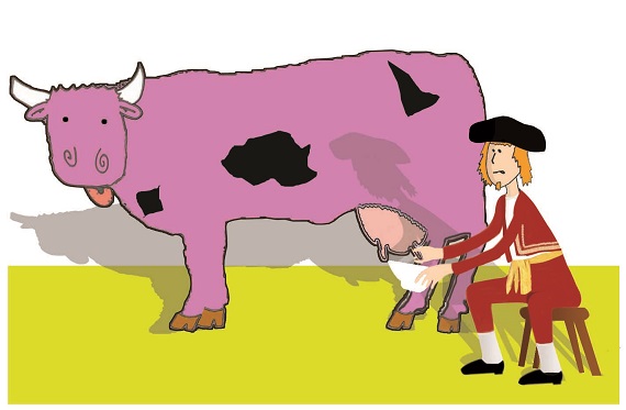 carte oû l'on voit un toréro en train de traire une vache.